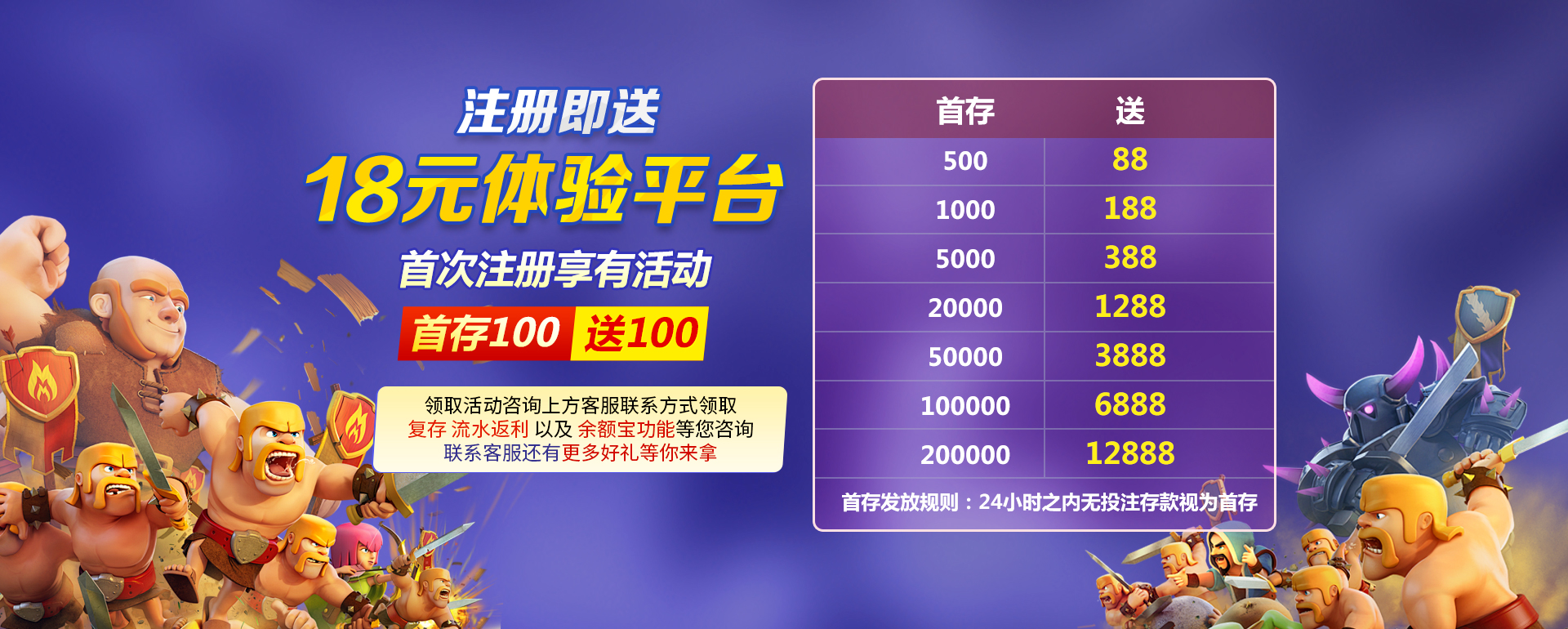 International brand, officially certified by Clash of Clans, register and receive an 18 RMB trial account, plus a first deposit bonus of up to 18,888 RMB, the highest first deposit rebate in the industry, and a guaranteed payout on your first sports betting order!